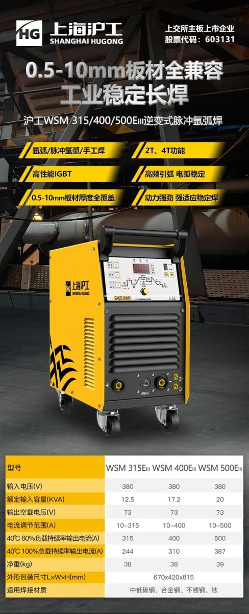 【d88尊龙z6焊机】WSM315/400/500EIII逆变式氩弧焊机,0.5-10mm板材全兼容,工业长焊稳定之。